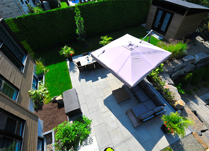 Toujours dans un souci environnemental et écologique, nos architectes valorisent l’utilisation de produits durables régionaux. Nous nous efforçons de sélectionner des matériaux conçus à partir de matière provenant du recyclage et qui sauront traverser le temps. Cet aspect est essentiel pour assurer la pérennité de vos installations. De plus, dans certaines de nos réalisations, nous introduisons différents produits écologiques, tels que le paillis raméal, le paillis de verre postconsommation. Nous préconisons aussi la réutilisation de certains matériaux déjà présents sur les lieux. Nous croyons que le réemploi et le recyclage de la matière première, des matériaux et de la végétation permettent de réduire considérablement les déplacements vers des sites d’enfouissement ou de récupération et contribuent à réduire les émissions de gaz à effet de serre liées au transport des matériaux. Une fois aménagé, vous pourrez profiter de votre terrain en toute quiétude pendant de nombreuses années.