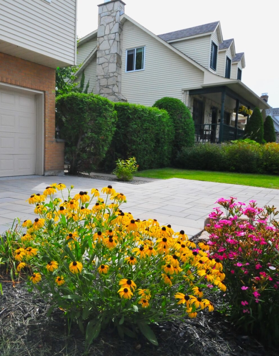 Enfin, cet aménagement paysager résidentiel allie esthétique, durabilité et fonctionnalité. Il rehausse la valeur de la propriété et améliore l’expérience quotidienne des occupants.